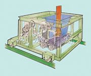 ◎水平挤出成型机: 由加料斗、二根辊子和U形振动网构成。以增大物料的表面积为目的,造粒物料与振动网接触,由旋转辊子的强制压力挤出网外,形成圆柱形的颗粒。
