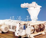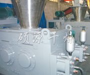 挤压造粒的形式可以有对辊式和轮辗式两种,对辊式挤压是先压成大块,再破碎成颗粒,这样装置的能力大、颗粒强度高、能耗低,对辊挤压在国外使用广泛。轮辗式是在辊表面直接做成有穴槽型的形状,一次挤成成型颗粒。产品强度较低有时需添加粘结剂。适合做有机肥和复合肥等颗粒肥料。